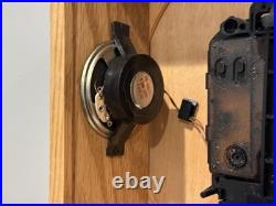 Introducing a beautiful vintage Seiko Quartz Westminster Whittington chime pendulum clock made of stunning brown oak wood. This 24-inch wall clock features a ROMAN NUMERALS display type and a Westminster Chimes sequence that adds a touch of elegance to any room. The clock's movement is powered by a battery and it is in mint condition. The clock's intricate design includes a pendulum and Westminster chimes, making it a must-have for any collector of decorative clocks.